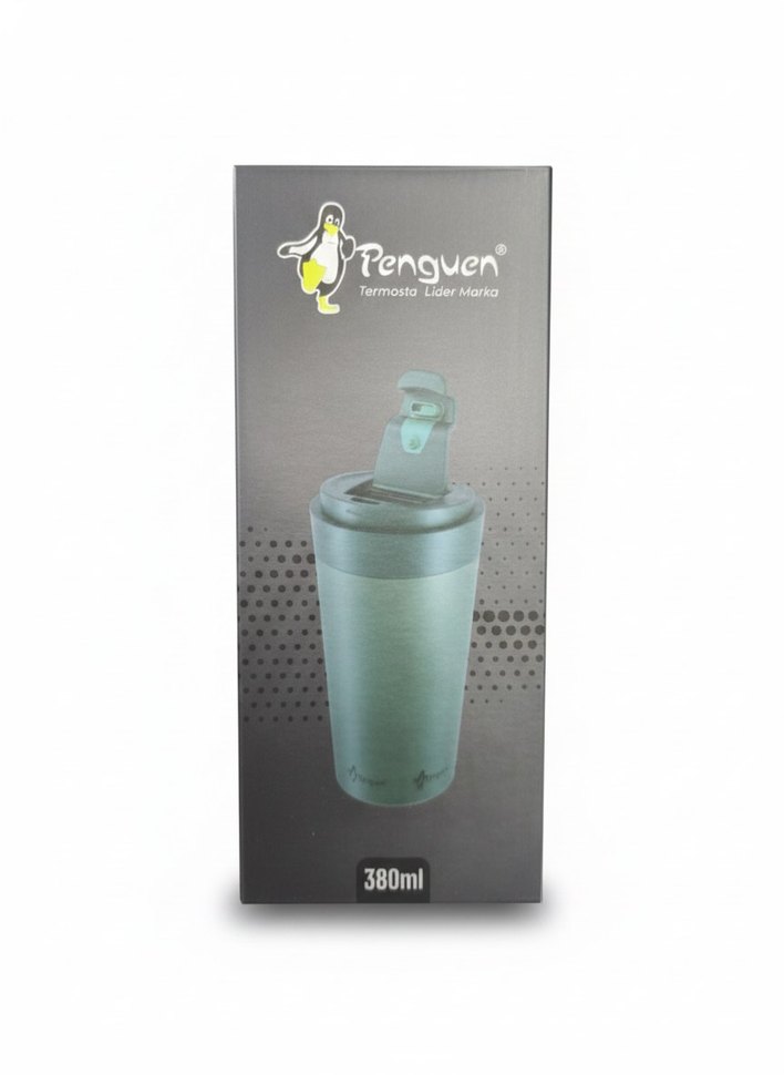 Penguen markasının 380ml kapasiteli turkuaz çocuk termosu, güvenli kapak ve dayanıklı gri taban ile sıcak tutar. Kompakt tasarımlıdır.