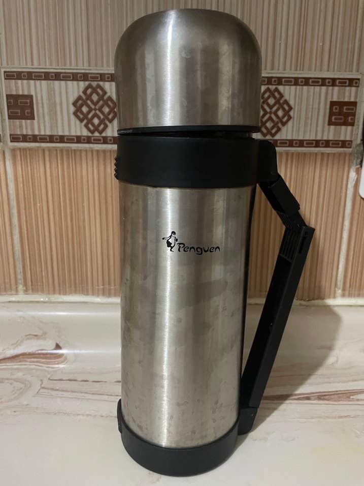 Penguen markalı gri çelik termos, sağlam tutma sapı ve güvenli kapağa sahiptir. İçecekleri saatlerce sıcak tutar. Çocuklar ve dış mekan kullanımı için uygundur. Kutusuyla birlikte gönderilecektir
