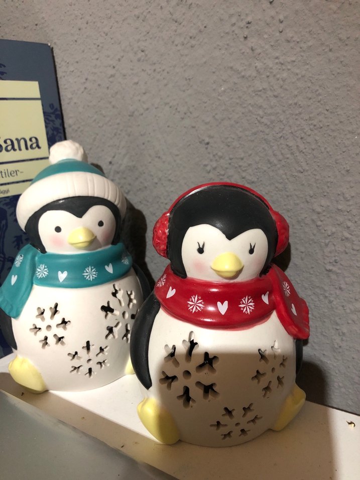 Kış temalı, mavi şapka ve atkı ile bir penguen ve kırmızı kulaklık ve atkı ile diğer penguen figürlerinden oluşan renkli set.Işıkları var fakat pili yok