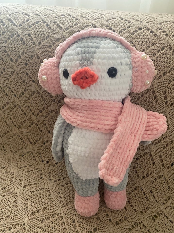 Kadife bebe ipten hazırlanmış ,pembe kulaklık , atkı ve inci detaylı gri penguen oyuncak. Sipariş üzerine hazırlanmaktadır . 5 gün içinde kargoya teslim. Çoklu sipariş alınır