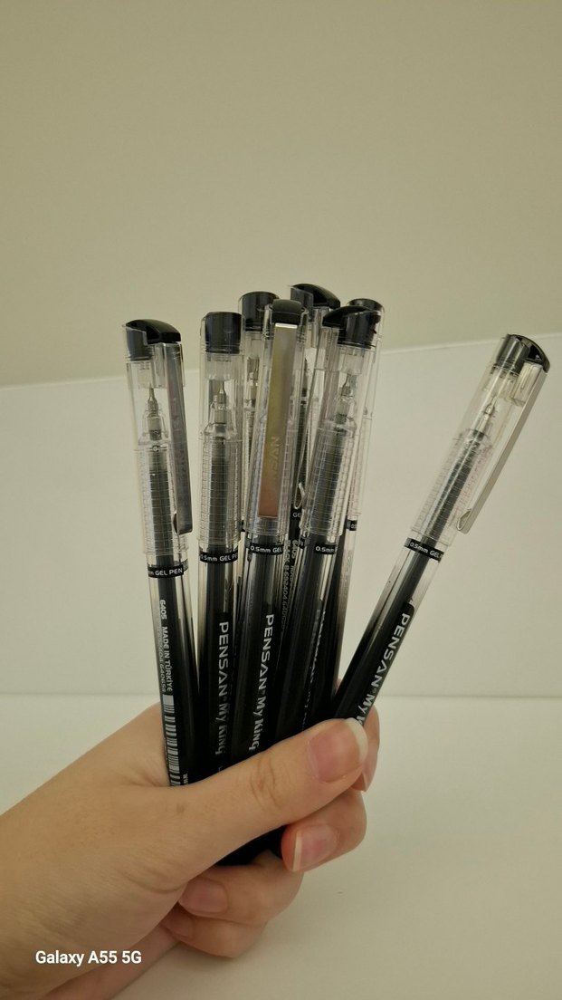 Pensan siyah jel kalemler, şeffaf kapaklı ve koyu mürekkepli. Akıcı yazım ve rahat tutuş sağlar. 8 adettir.