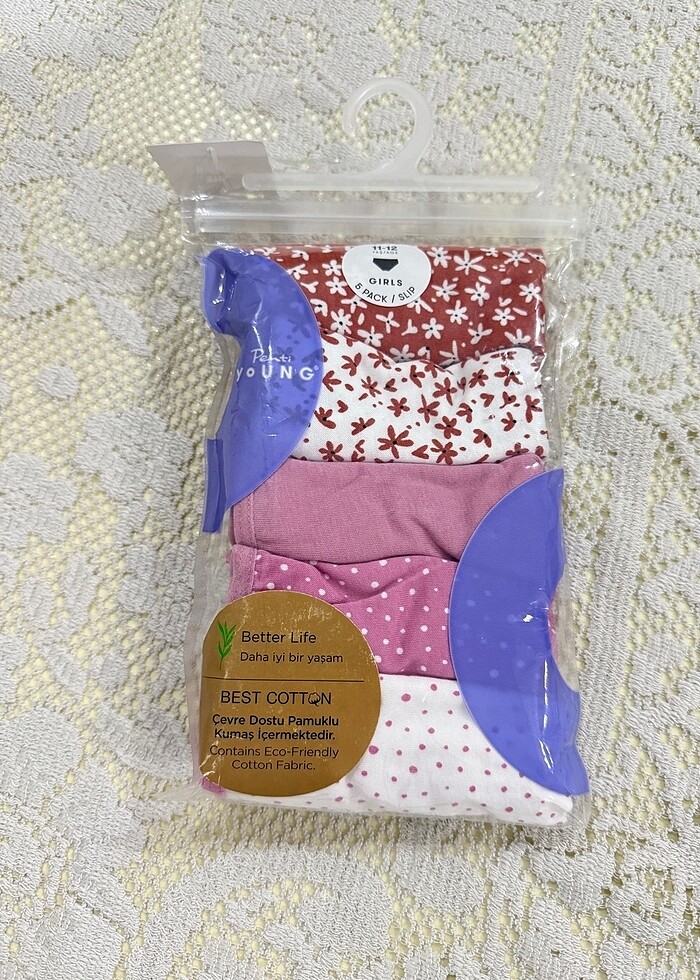11/12 yaş beşli silip. Paketli sıfır üründür. Çevre dostu Pamuklu kumaş içermektedir.