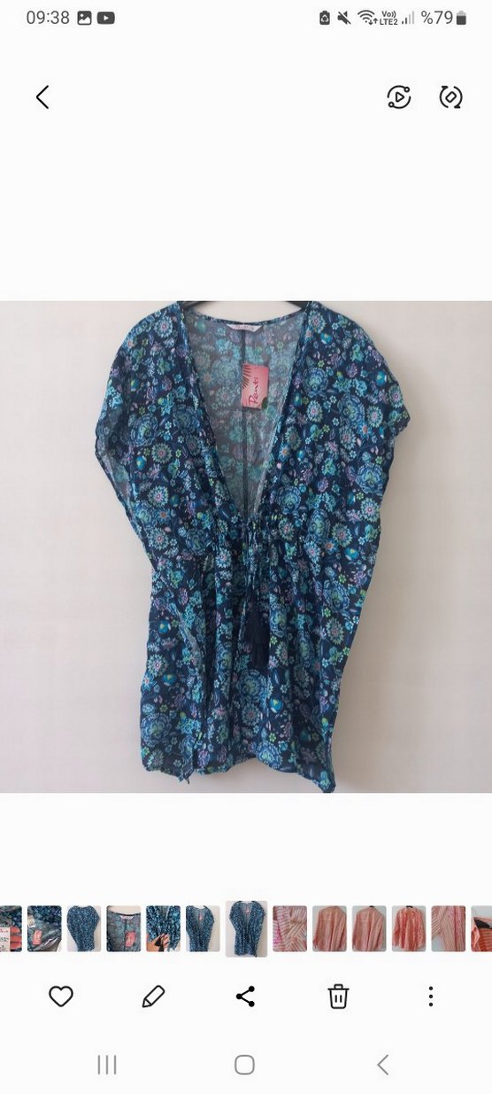 V yakalı, püsküllü, mavi tunik. Kolsuz, bol kesim PENTİ S BEDEN