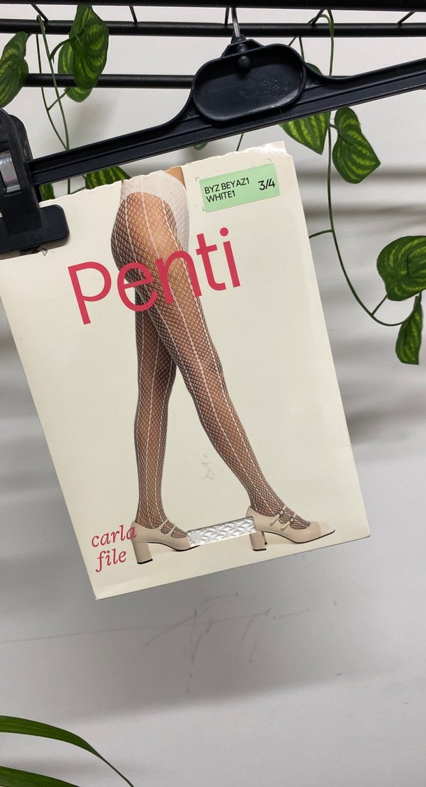 Penti marka beyaz file desenli, vücuda oturan midi uzunlukta çorap, romantik buluşmalar için uygun.
