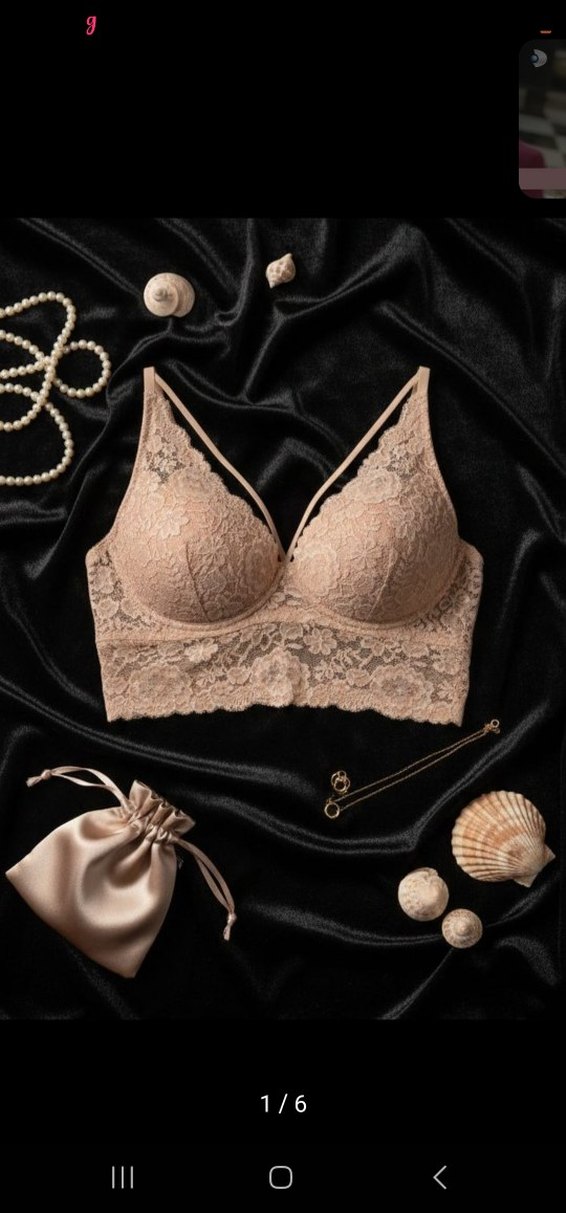Bej renkte, kısa boyda ve zarif dantel kumaştan yapılmış bralet, ışıltılı ve bohem tarzı bir araya getirir.
