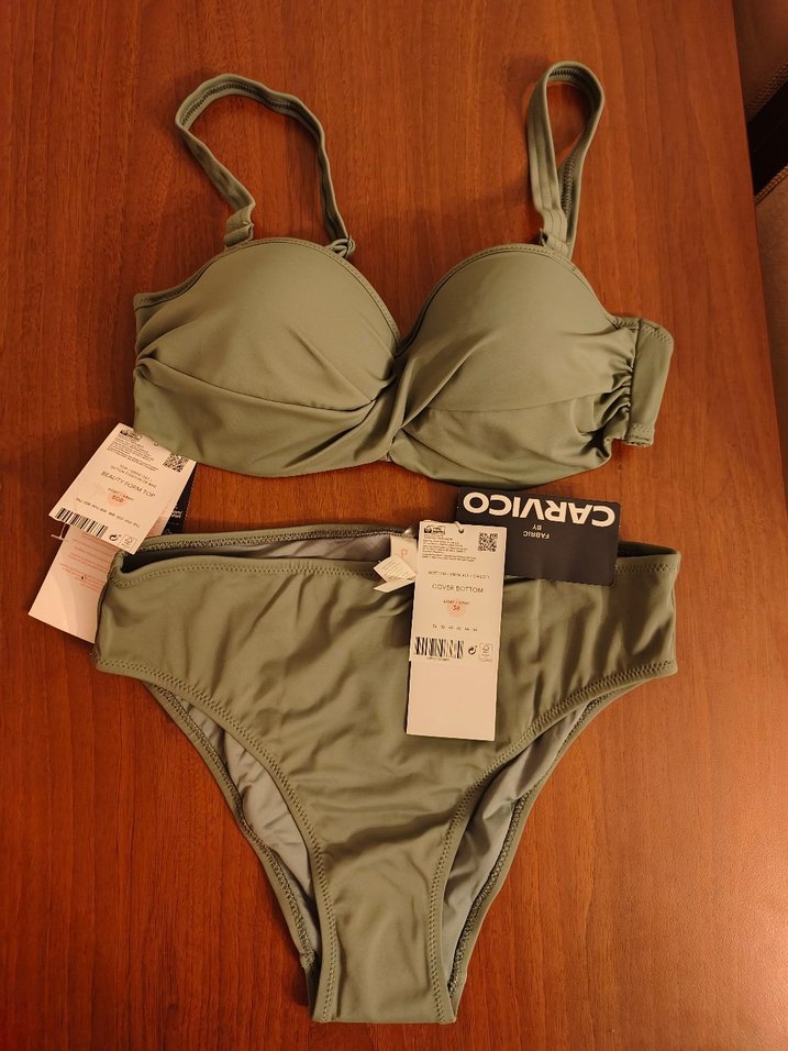 Yaz başı Penti den alınan ve hiç giyilmeden duran Strappy askılı, kısa kesim ve fitted tasarımlı haki renk bikini. Alt 38 beden Üst 80B bedendir. Athleisure ve streetwear tarzına uygun, rahat ve şık plaj kullanımı için idealdir.