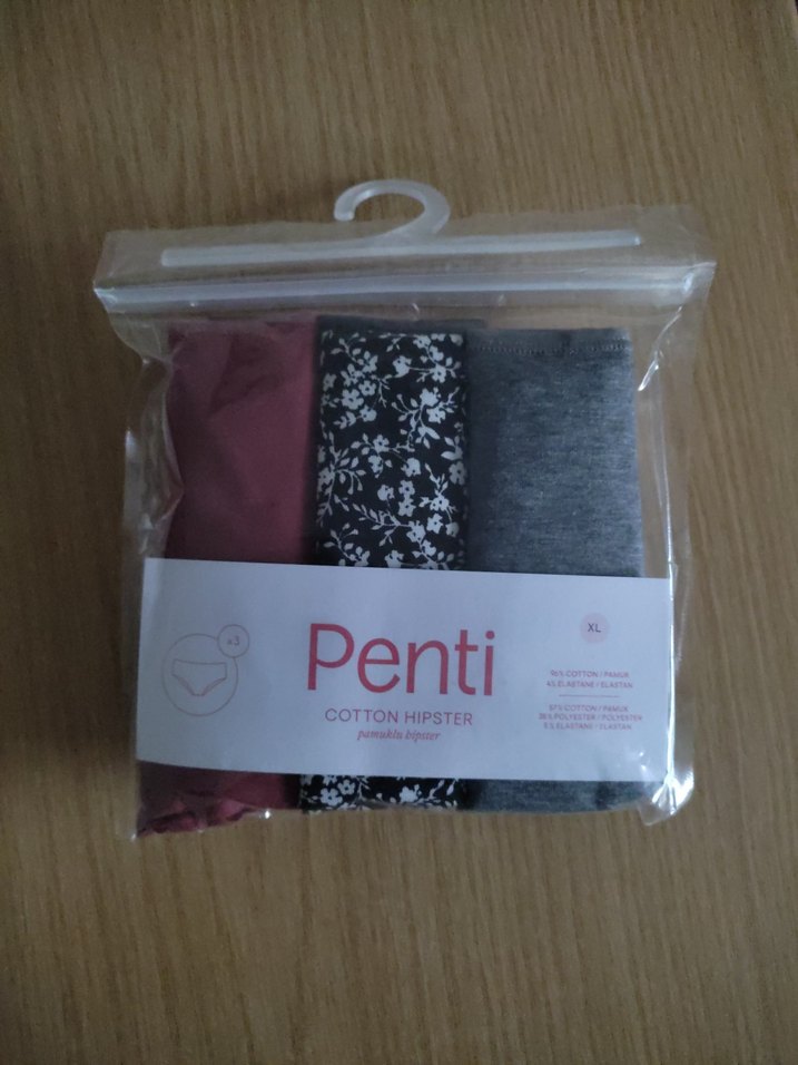 Penti XL pamuklu hipster külot, baskılı gri desene sahip, normal boyda ve vücuda oturan kesimde tasarlanmıştır. Pamuklu rahatlık ve esneklik sunar.