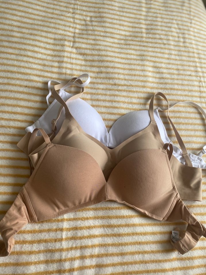 Bej renkli, dikişsiz ve minimalist tasarımlı sütyen. Hafif destek sağlar ve normal boydadır. Düz ve normcore stil için uygundur. Hiç giyilmedi neredeyse. Sondaki giyildi biraz. 4 lü FİYATIDIR