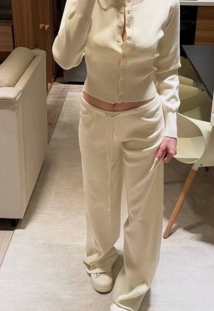 Kadınlar için beyaz pamuk pantolon, regular fit ve midi boyda. Minimalist, sokak stili ve zahmetsiz şıklık sunar, günlük kullanım için uygundur.