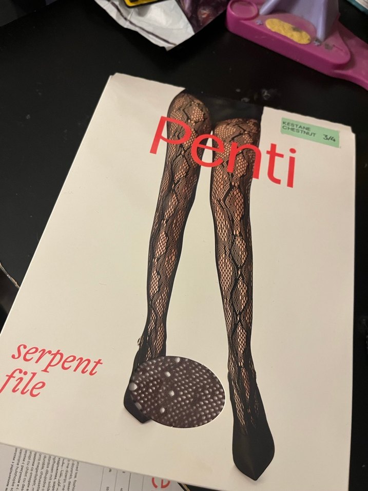 Siyah, kahve yılan desenli ve dantel detaylı, sentetik kumaştan yapılmış, midi boy ve vücuda oturan külotlu çorap. Cesur, punk tarzı partiler için uygundur. SIFIR ÜRÜN
