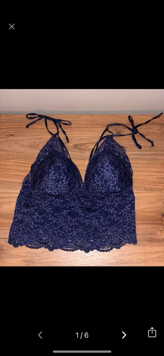 Lacivert renkte, dantel kumaştan yapılmış ve ayarlanabilir omuz bağcıkları bulunan bohem tarzda bir bralet. Desensiz ve sade tasarıma sahip. İp kısmında biraz yıpranma var fotoğrafta da belli olmamış isterseniz detaylı ekleme yaparım ama herhangi bir sorun çıkartmaz fiyata yansıttım.