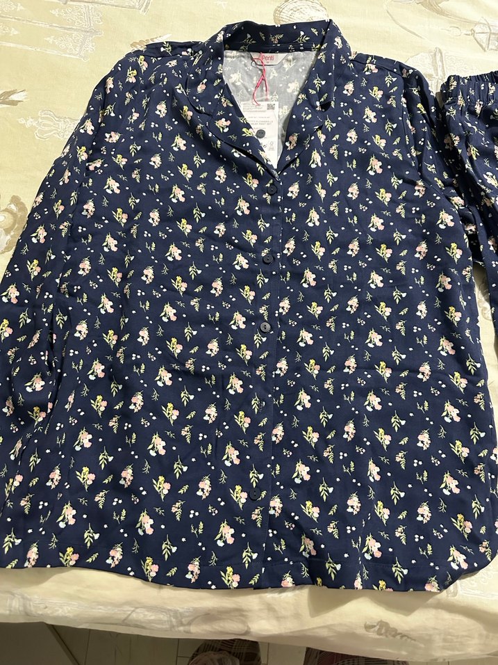 Uzun kollu, düğmeli ve V yakalı bu gömlek pamuktan üretilmiştir. Koyu mavi zemin üzerine çiçek desenlidir, rahat kesimlidir.