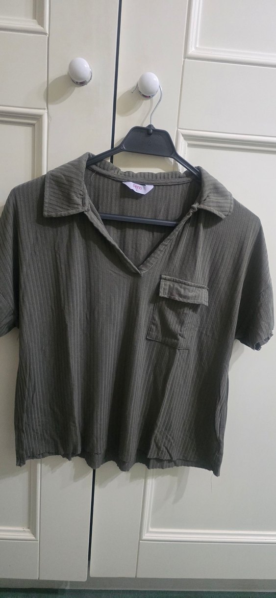 Penti Marka Haki Yeşil Ribana Dokulu V Yaka Crop Bluz