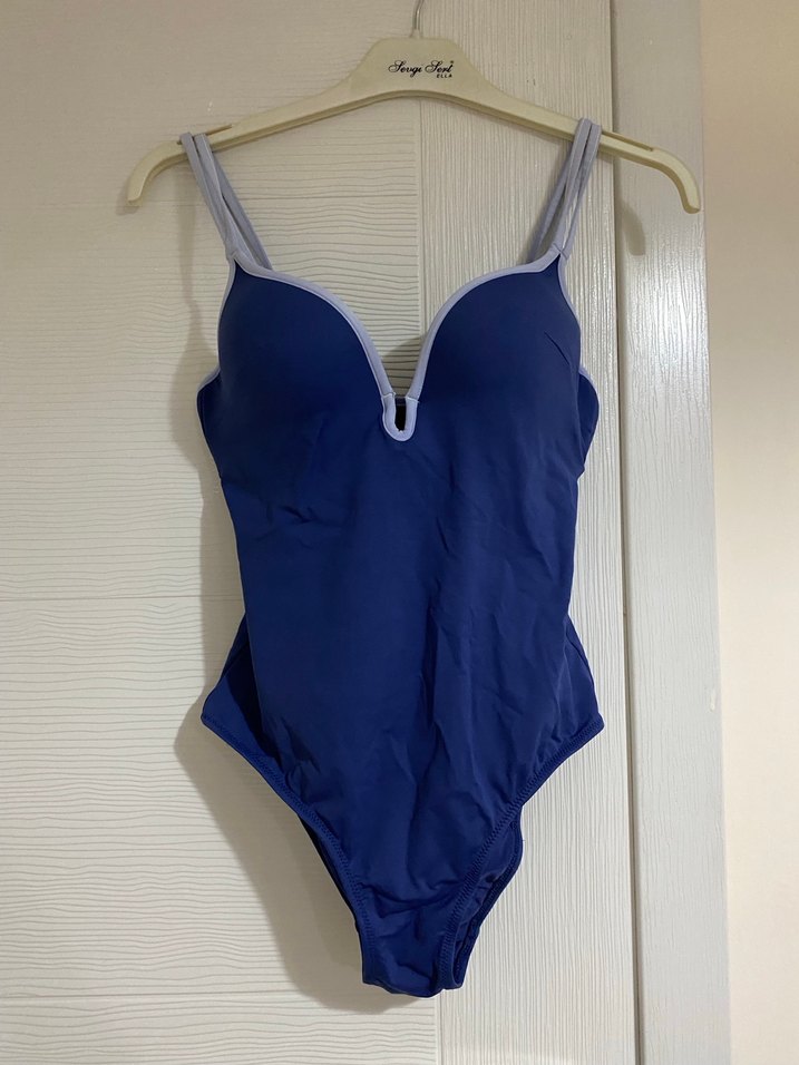 Denizde birkaç kez kullandım çok şık duran bir mayo. Yanlışlıkla yüksek dereceye attığım için beyaz kısımları açık mavi oldu. Ama kendin rengiyle uyumlu olduğu için göze batmıyor