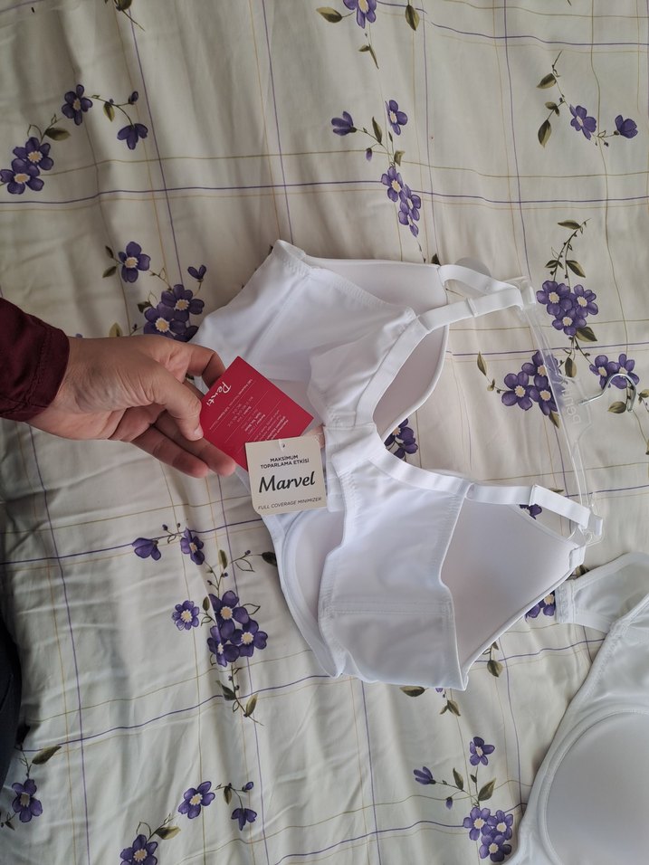 Marvel marka, beyaz renkli, baskılı ve normal uzunlukta sütyen. Parisyen normcore tarzını yansıtıyor. Ürünler anneme hediye geldi fakat büyük olduğu için giyemedi. 100 E'dir biri denendi diğeri ise henüz etiketlidir. Fiyati birlikte belirleyebiliriz. 2li fiyattir