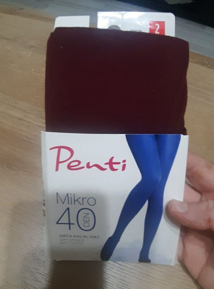 Bordo renk, elastik bel, baskılı desen ve normal midi boyda, cesur gotik stile uygun külotlu çorap. Marka: Penti.