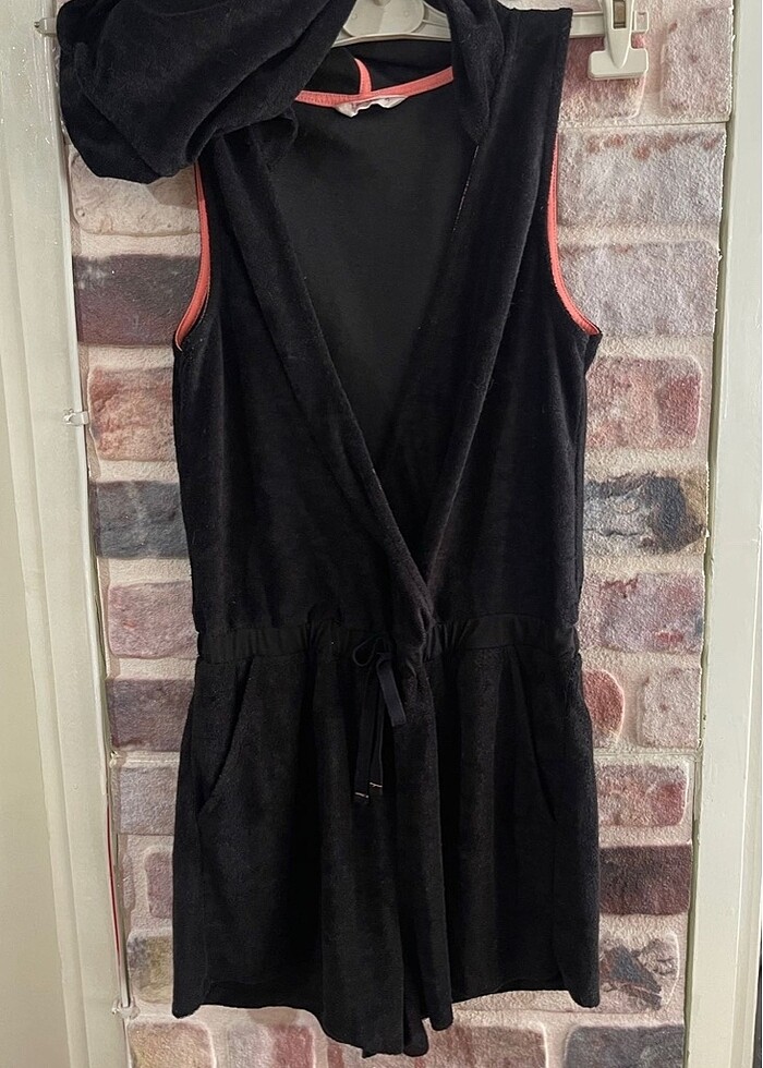 Havlu kumaşında hızlı kurulamak için ideal. Tulum formunda pembe detaylı. M beden ama S ile de uyumlu. Plajda çok şık duruyor. Giyip giymediğimi bile hatırlamıyorum Fazlalıktan satılık.