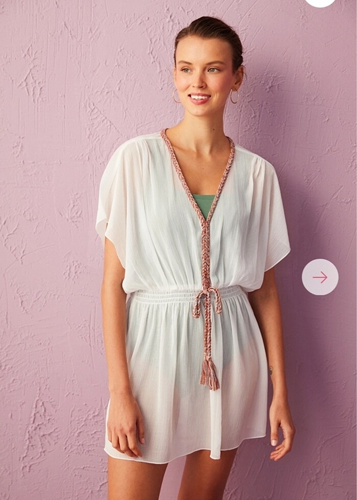 Beyaz Yakası Örgü Detaylı Braided Kaftan Sorunsuz az giyildi