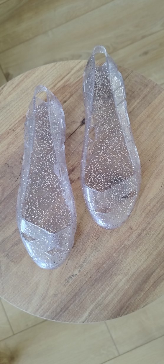 Parlak simli, bej renkte kız babet ayakkabı. Esnek kauçuk malzemeden yapılmış, desensiz ve bohem tarzda şık bir model. ✨