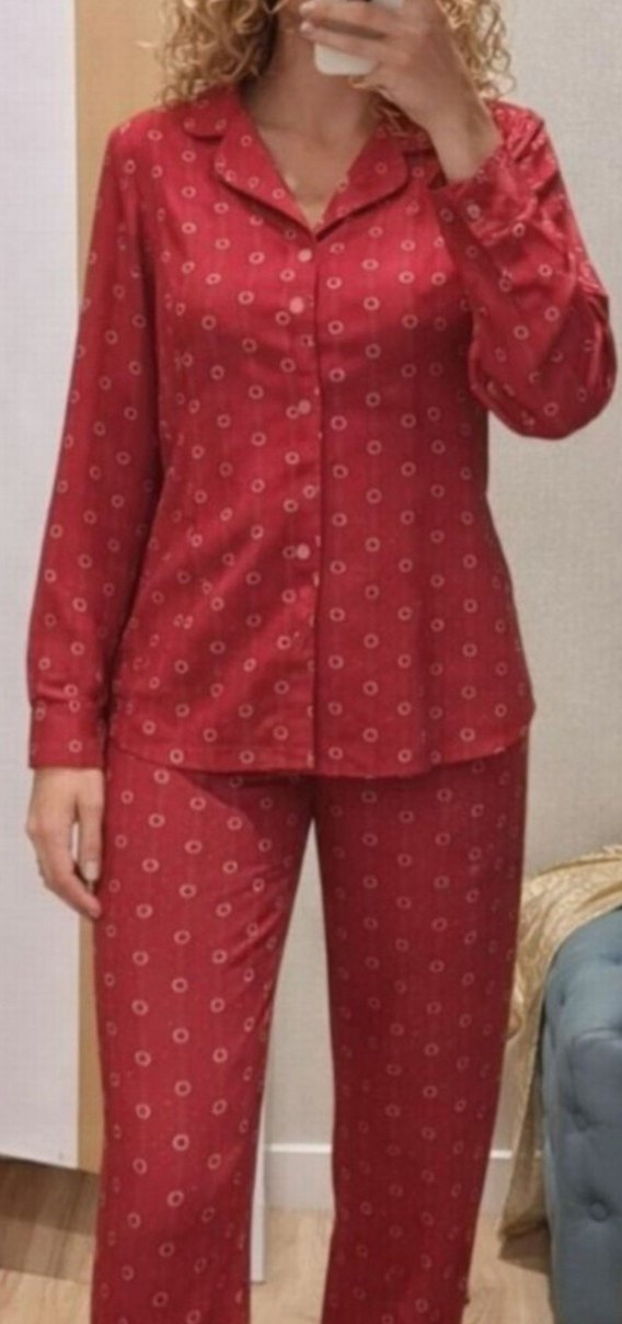 Almadan önce stok durumunu sorunuz.S beden beli 32 cm. İkili kırmızı penti alt üst takım. Ev giyim için çok şık bir ürün defosu yoktur.
