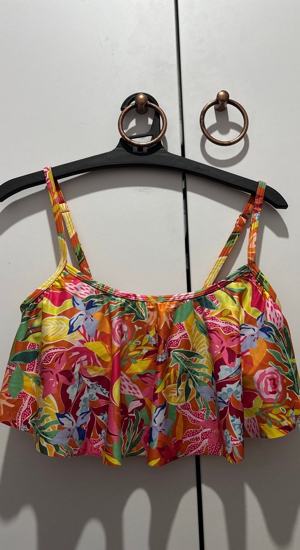 36 beden Renkli askıları ve bol kesimiyle fırfır detaylı kadın bikini