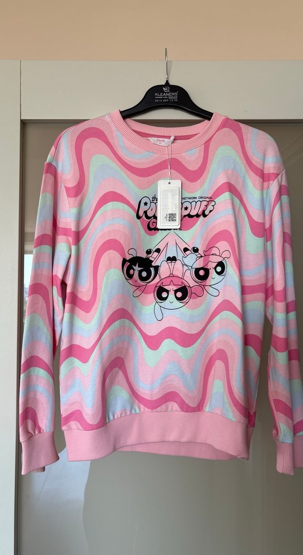 Pastel pembe tonlarında turquaz renk geçişli, uzun kollu, bol kesim sweatshirt.Üzerinde poweroff Girls baskısı ve harika renk detayları bulunur. Yumuşak, pamuklu ve sıcak kumaştan üretilmiştir. 'Poweroff Girls' yazısı baskılıdır.Orijinal lisanslı mağaza ürünüdür.
