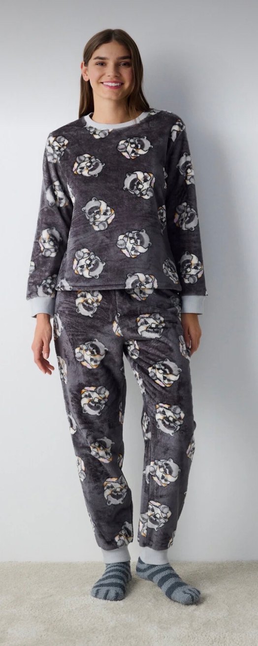 Penti S beden peluş kumaştan antrasit renkli pijama takımı sadece 1-2 kez giyildi.