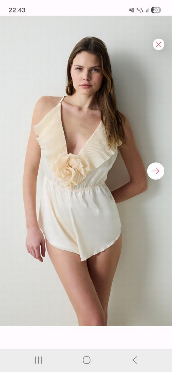 Saten Volan Rose Teddy Krem Bodysuit. Satin Volan Rose Teddy, saten kumaşının zarif parlaklığı ve volan detaylarının hareketli yapısıyla şık bir tasarıma sahiptir. Satenin yumuşak dokusu, giydiğin her an konforlu bir deneyim sunar. Bu teddy, zarif dikişleri ve estetik tasarımıyla hem şık hem de rahat bir görünüm elde etmeni sağlar. Modern bir dokunuş ve zarafet arıyorsan, bu tasarım koleksiyonun için harika bir seçenek olacak! Son fiyattır.
