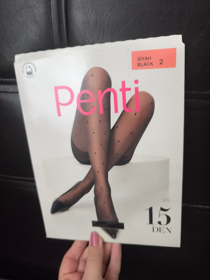 Penti markalı siyah baskılı, ince ve normal boy külotlu çorap. 15 DEN kalınlıkta kullanıldı