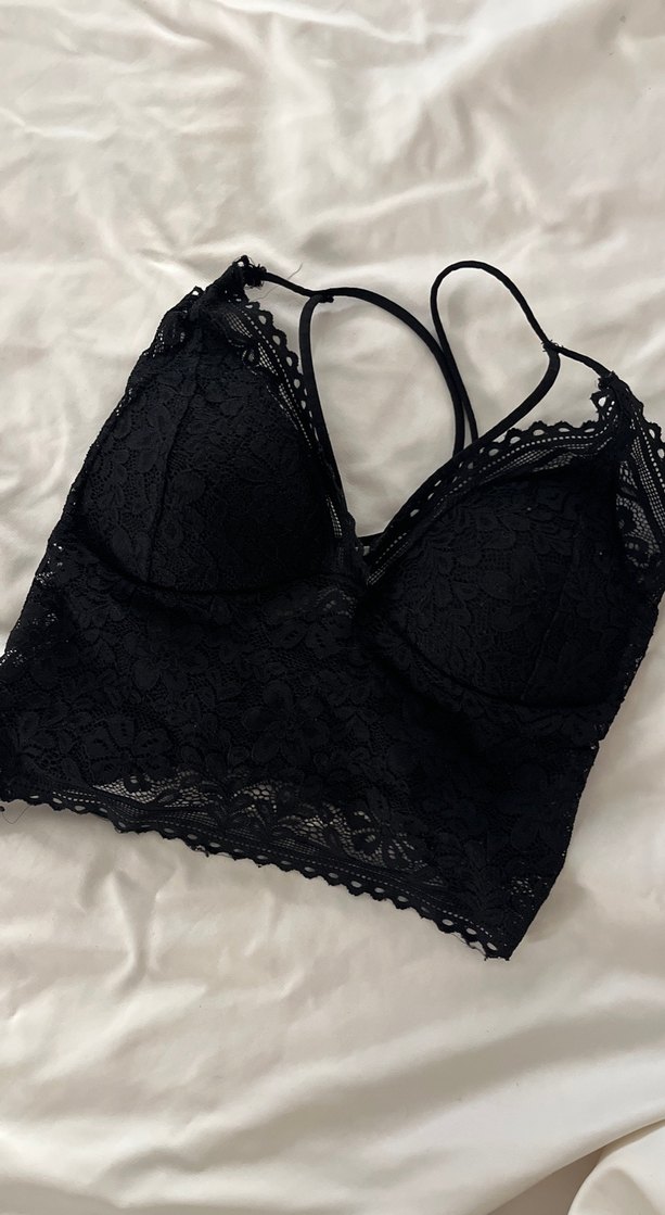 Siyah dantel gotik bralet, midi uzunlukta ve zarif dantel detaylara sahip, koyu ve şık bir görünüm sunar.