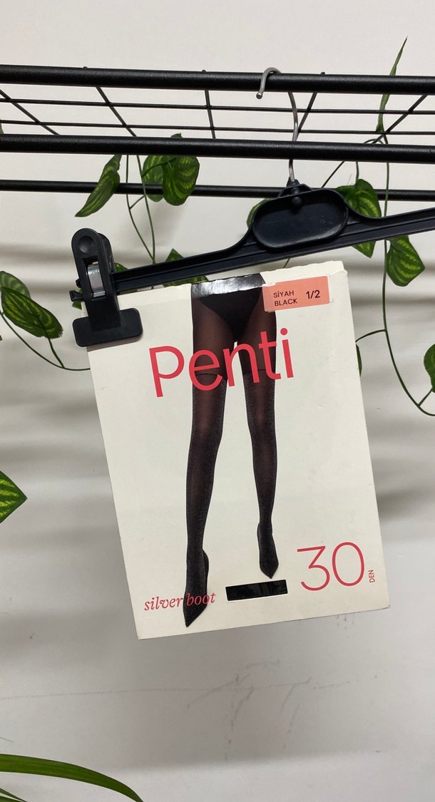 Penti'nin baskılı, siyah mini çorabı, plastik görünümlü malzemeden üretilmiştir. Günlük kullanıma uygun, sıkı kesim ve gotik tarzda.