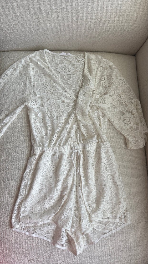 Bohem tarzı beyaz pareo , ince dantel kumaştan yapılmıştır.