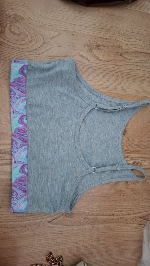Gri renkte, askılı ve elastik bantlı kız crop top. Yumuşak sentetik kumaştan, ayarlanabilir askılı model. dolabımda bi tane daha penti marka sporcu sütyeni var onu bununla aynı zamanda aldım ikisi de hiç kullanılmadı isterseniz ikisini de gönderebilirim isterseniz ayrı ayrı alabilirsiniz.13 14 yaş yazıyor ama göğsünüz küçük veya orta boyuttaysa da giyebilirsiniz s m uyumlu bence