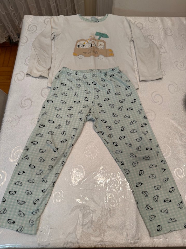 Penti markali - termal pijama Beyaz, düğmeli ve baskılı üst ile pastel desenli, uzun kollu ve bol kesim erkek çocuk pijama takımı. Rahat kullanım için tasarlanmıştır.