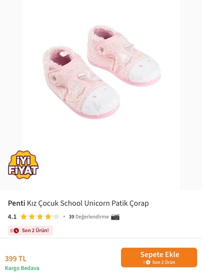 Penti marka 25 numara unicornlu panduf.Evde giyildi sadece ama yıkansa iyi olur uyguna yüklüyorum