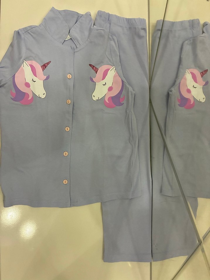 Mavi ütülü tertemiz lekesiz kız çocuk unicorn ğijama takımı 4yaş