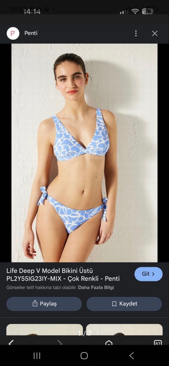 Derin V yaka ve askılı tasarıma sahip pastel mavi tie-dye desenli bikini Yan bağcık detaylarıyla kısa ve vücuda oturan kesim, plajda zahmetsiz şıklık sunar.