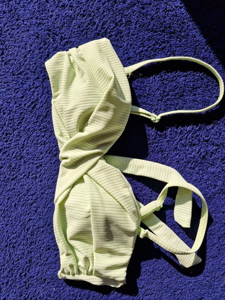 Bir süre kullandım, durumu iyi. Artık giymiyorum. M-L beden veya 80B-80C uyumlu. Sadece bikini üstü.