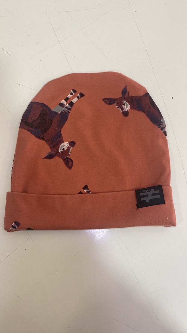 Koyu kahverengi çocuk beresi, baskılı geyik desenine ve tokalı detaya sahiptir. Yumuşak, sıcak kumaştan üretilmiştir. 4-8 yaştır Ürünler sıfır