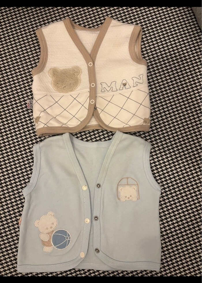 Penye bebek yelekleri 0-3 aylık az kullanılmış yikanip ütülenmiştir birisi gaye baby diğeri miniel bebek markası