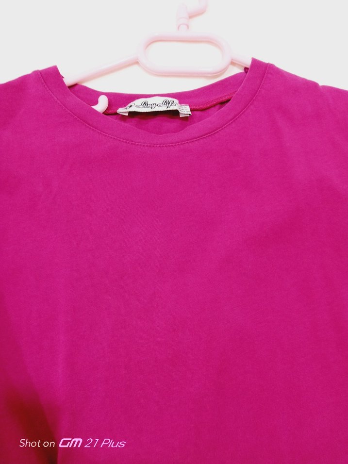 mor renkli, yuvarlak yakalı ve kısa kollu penye elbise etek kısmında çok az sökük var