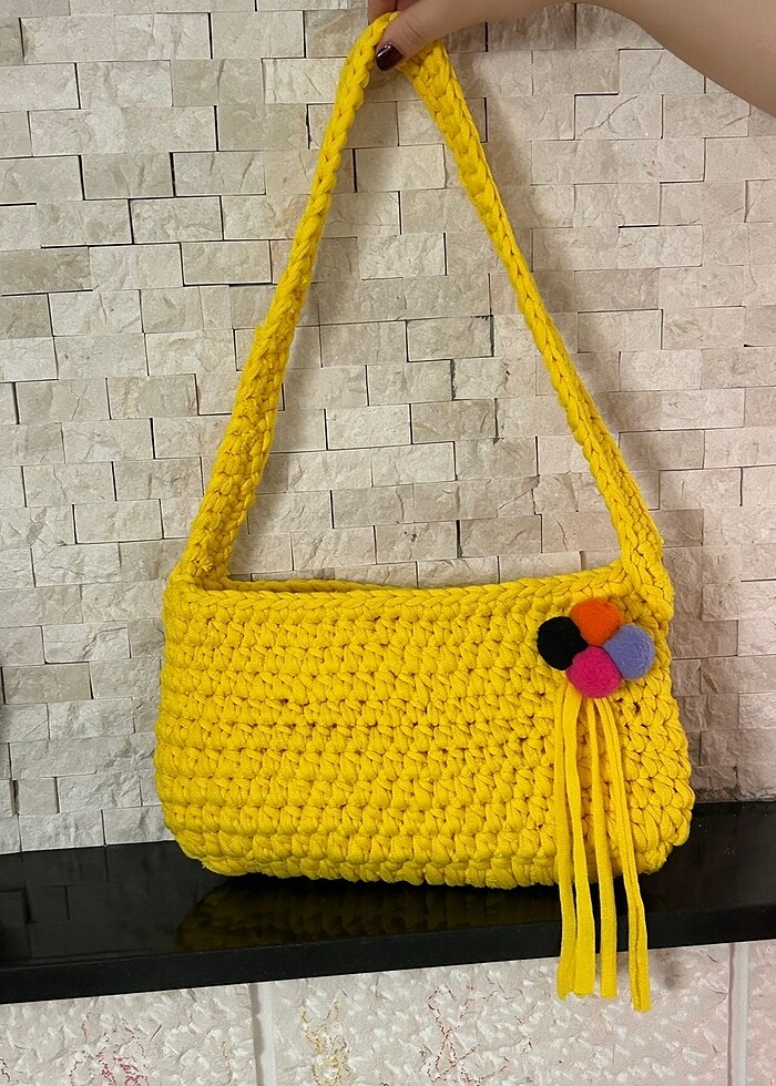 Tamamen el örgüsü bir omuz çantasıdır. En: 30 cm Yükseklik: 17 cm Askı boyu: 30 cm