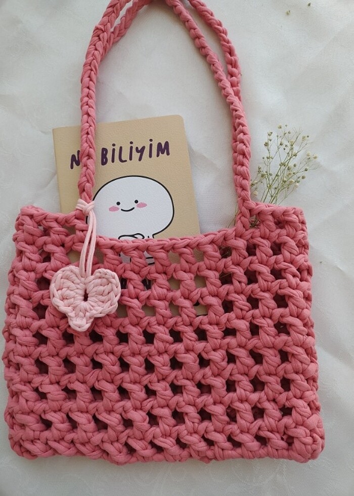 Penye ipten örülmüş çantadır. Bu fiyat bu ürün için geçerlidir. Yanına minik hediyesi de olacaktır. İstenilen renkte de örülür.