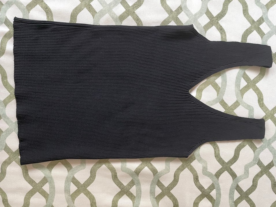 Yumuşak sentetik kumaştan, V yakalı. Sırt kısmı daha derin V kesim. People marka, etiketi kesildi. Aynı marka aynı model yeşili de mevcut. Esnek olduğu için S-M beden.