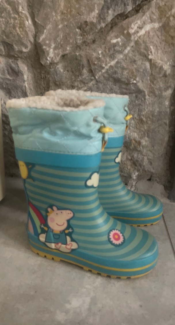 Peppa Mavi renkli, baskılı desenli, polar astarlı çocuk çizmesi. Altında 8 yazıyor