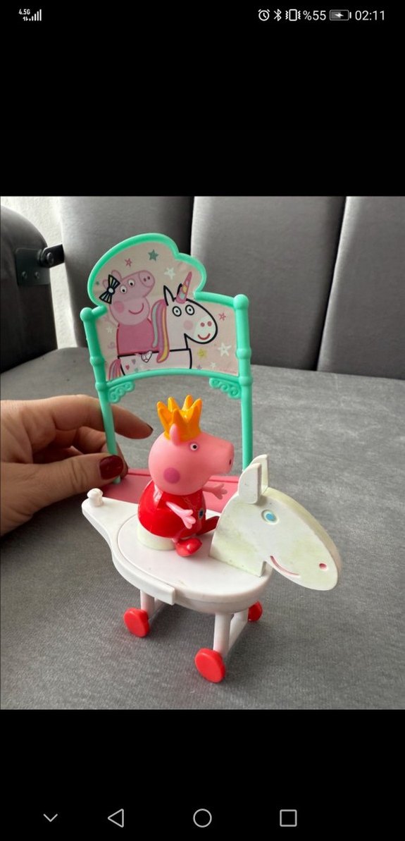 Peppa Pig temalı Prenses Peppa figürü ve unicorn (tek boynuzlu at) sahnesinden oluşan sevimli oyun setidir. Renkli tasarımıyla hem oyun hem de vitrin/dekor amaçlı kullanılabilir. Ürün içeriği: Prenses Peppa figürü Unicorn figürü Sahne/arka pano parçası (Fotoğraflarda görünen parçaların tamamı gönderilecektir.) Durum: Kullanılmıştır. Genel durumu iyi Ufak kullanım izleri olabilir. Detaylar fotoğraflarda net şekilde görülmektedir Pig seven çocuklar için çok tatlı bir set, günüzzi / hediye için uygundur.: #peppapig #prensespeppa #unicorn #cocukoyuncagi Peppa Doğum #peppapigoyuncak #kizcocukoyuncak #figurseti #oyuncak