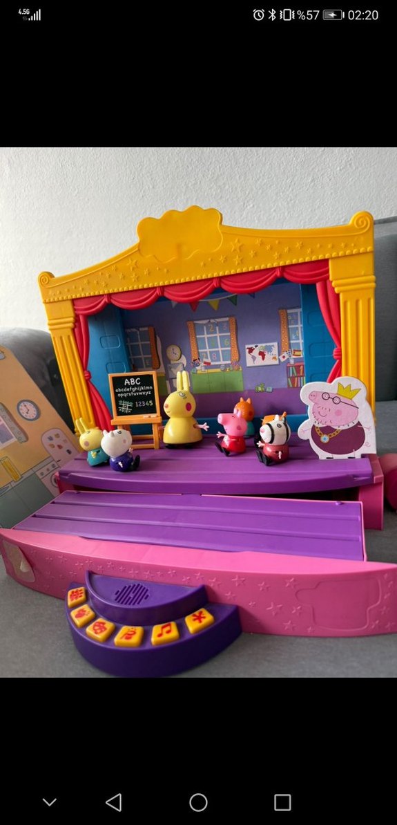 Peppa Pig sesli sahne tiyatro oyun seti Butonlara basıldığında müzik ve sesler çıkarır