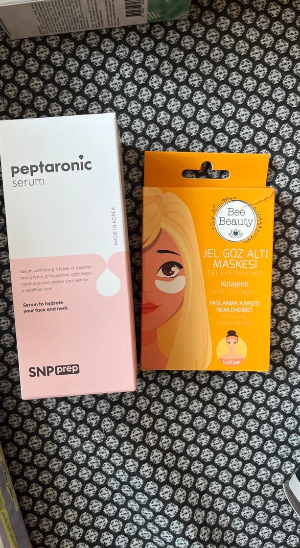 Peptaronic serum, peptit ve hyaluronik asit ile yüz ve boynu nemlendirir. Bee Beauty jel göz altı maskesi kolajen içerir, nemlendirir ve yaşlanma karşıtı etki sağlar.