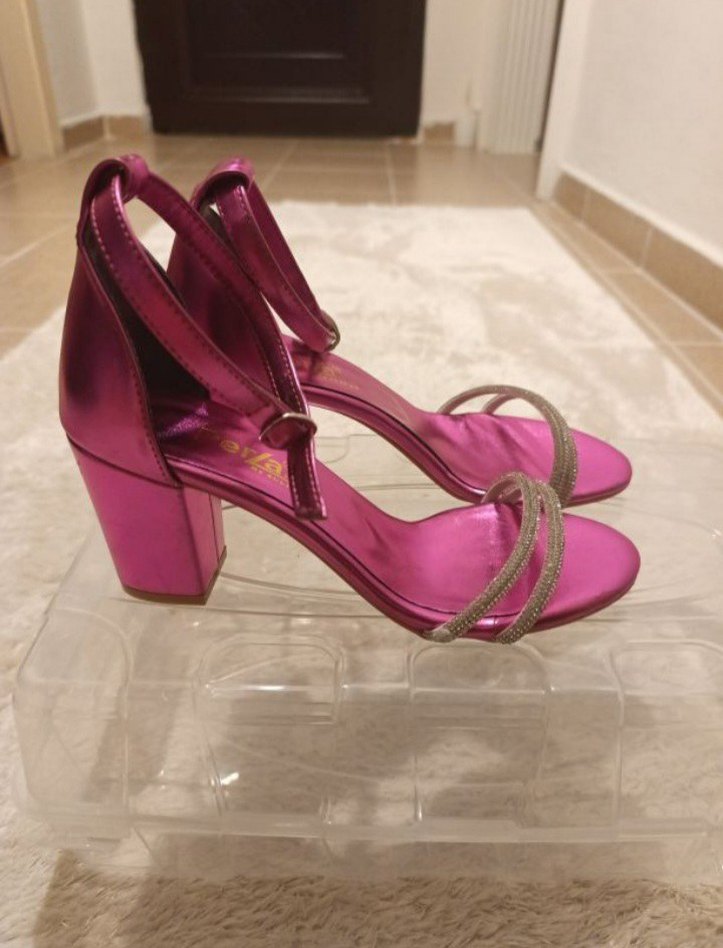Pera Marka Pembe Parlak Tokalı Blok Topuklu Abiye Ayakkabı
