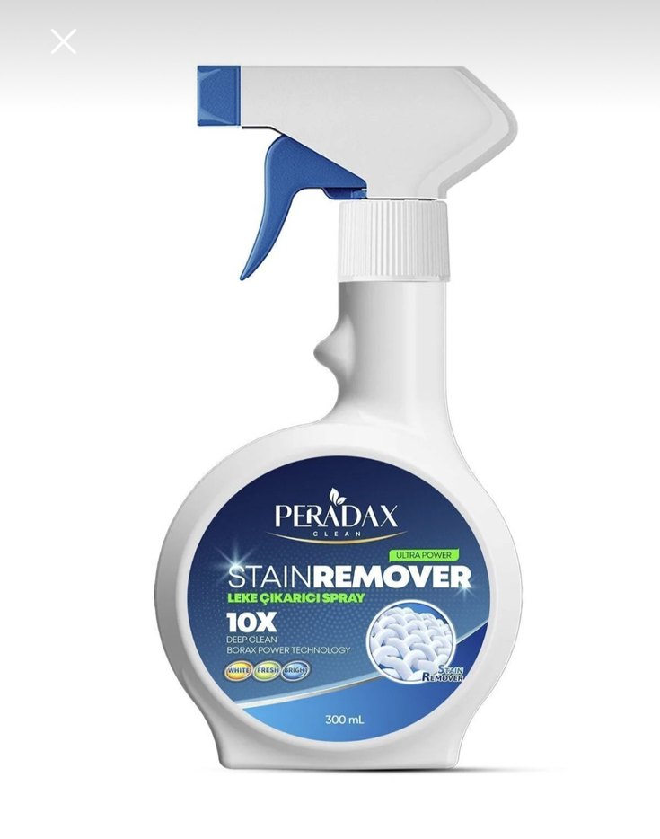 Peradax Leke Çıkarıcı sprey, 10 kat boraks teknolojisi ile 300 ml şişede güçlü temizlik sağlar.